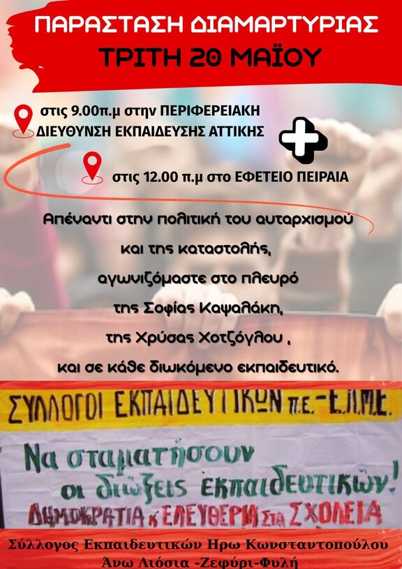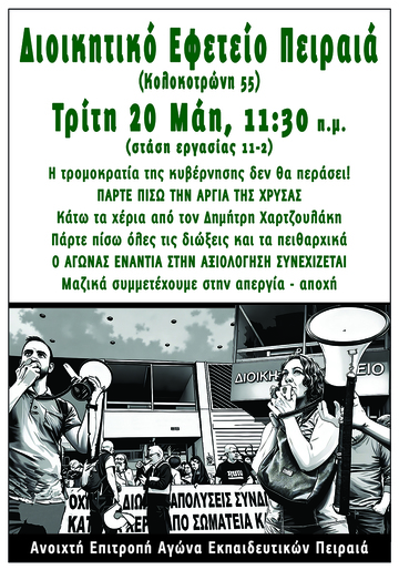 📣ΟΛΕΣ/ΟΛΟΙ ΤΗΝ ΤΡΙΤΗ 20/5 ΣΤΙΣ 11:30, ΔΙΟΙΚΗΤΙΚΟ ΕΦΕΤΕΙΟ ΠΕΙΡΑΙΑ (Κολοκοτρώνη 55 - μετρό Δημοτικό Θέατρο) - στις 9πμ στην ΠΔΕ Αττικής (Ξενίας 24, μετρό Μέγαρο Μουσικής)