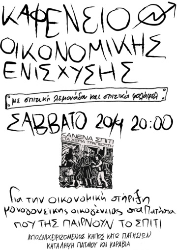 Στα Πατήσια της εργατικής τάξης, μετά από 35 χρόνια στην γειτονιά μας, μια ακόμη οικογένεια απειλείται με έξωση από το μοναδικό της σπίτι. Μια μητέρα που πάλευε καθημερινά για να μεγαλώσει τα παιδιά της, βρίσκεται αντιμέτωπη με την ασυδοσία των τραπεζών, των funds και του ελληνικού κράτους που την πετάνε στο δρόμο. ΔΕΝ ΠΡΟΚΕΙΤΑΙ ΝΑ ΤΗΝ ΑΦΗΣΟΥΜΕ ΜΟΝΗ ΤΗΣ!