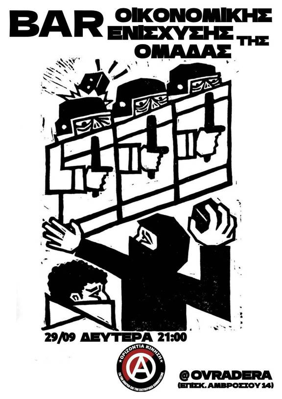Bar οικονομικής ενίσχυσης της ομάδας Οριζόντια Κίνηση - Για την Αναρχία και τον Ελευθεριακό Κομμουνισμό