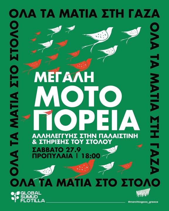 Μοτοπορεία Αλληλεγγύης στο λαό της Παλαιστίνης και τον Παγκόσμιο Στόλο Sumud