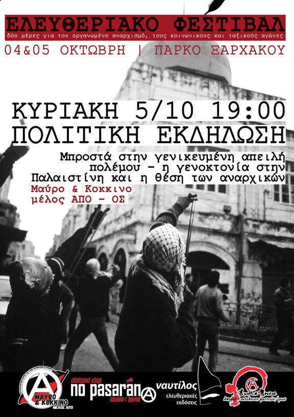 Πολιτική εκδήλωση: Μπροστά στην γενικευμένη απειλή πολέμου - η γενοκτονία στην Παλαιστίνη και η θέση των αναρχικών