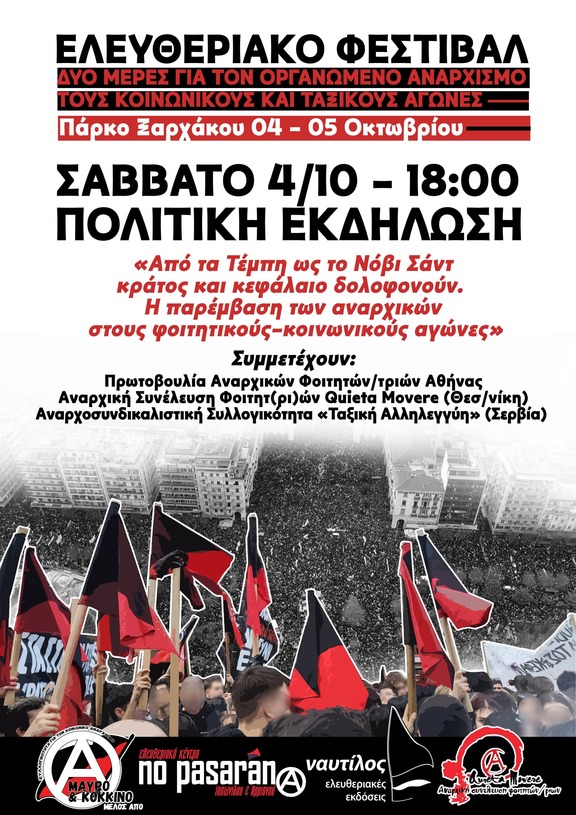Πολιτική Εκδήλωση: "Από τα Τέμπη ως το Νόβι Σάντ κρατος και κεφάλαιο δολοφονούν. Η παρέμβαση των αναρχικων στους φοιτητικούς - κοινωνικούς αγώνες"