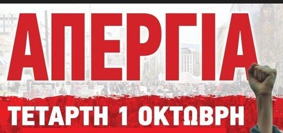 Τετάρτη 1η Οκτώβρη - Όλοι στην απεργία και τις απεργιακές συγκεντρώσεις! - Καλέσματα