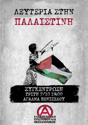 Συγκέντρωση αλληλεγγύης στον παλαιστινιακό λαό, Τρίτη 7/10, 19:00, Άγαλμα Βενιζέλου