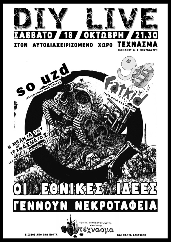 σάββατο 18 οκτώβρη στις 21.30: DIY LIVE ενάντια στις εθνικές γιορτές στον αυτοδιαχειριζόμενο χώρο Τέχνασμα