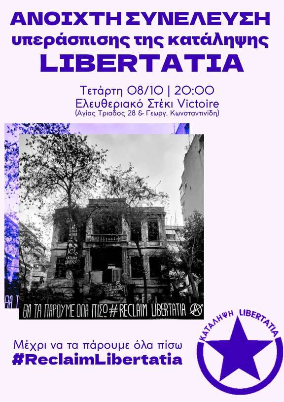Ανοιχτή συνέλευση υπεράσπισης της κατάληψης Libertatia - Τετάρτη 8/10 στις 20:00.