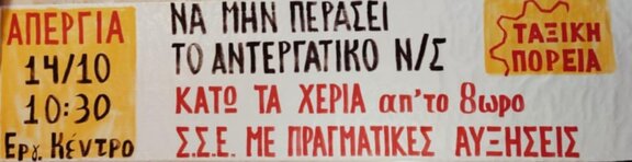 ΤΗΝ ΤΡΙΤΗ 14 ΟΚΤΩΒΡΗ ΑΠΕΡΓΟΥΜΕ!