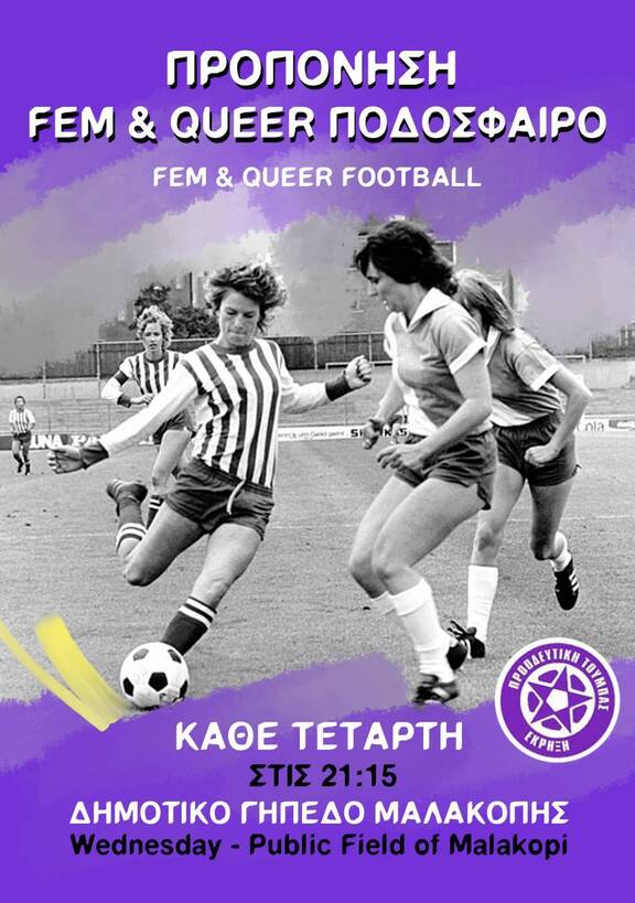 EKRIKSI fem & queer football team training - every Wednesday at 9:15 p.m. at the Malakopi Municipal Stadium