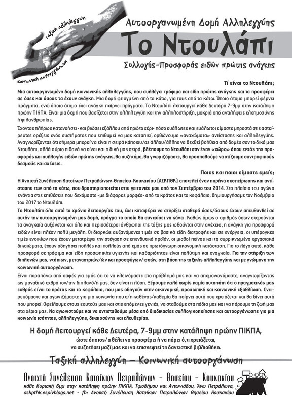 Αυτοοργανωμένη Δομή Αλληλεγγύης Συλλογής-Προσφοράς ειδών 1ης ανάγκης Ντουλάπι