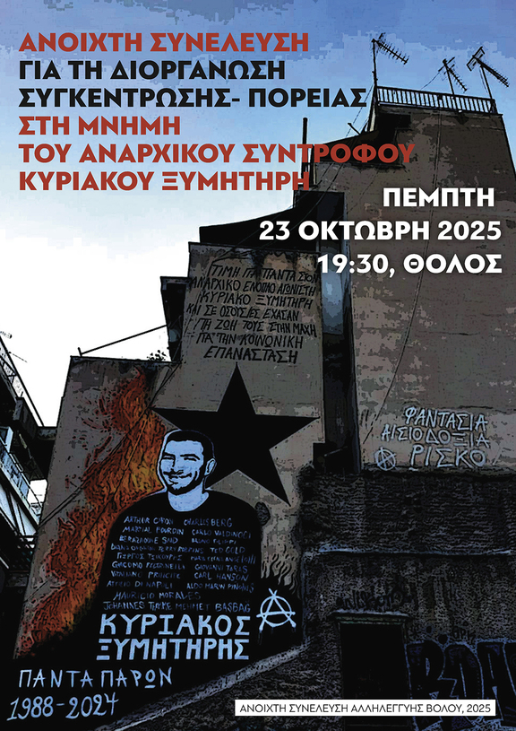 Στις 31 Οκτώβρη 2025 συμπληρώνεται ένας χρόνος από τον θάνατο του αναρχικού αγωνιστή Κυριακου Ξυμητηρη.