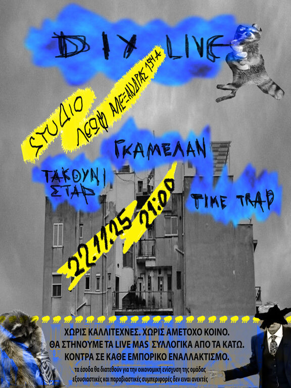 Το Σάββατο 22 Νοεμβρίου στήνουμε ένα αυτοργανωμένο λάιβ στο υπόγειο της Λ. Αλεξάνδρας παρέα με Γκάμελαν, Τακούνι Σταρ και Time Trap.