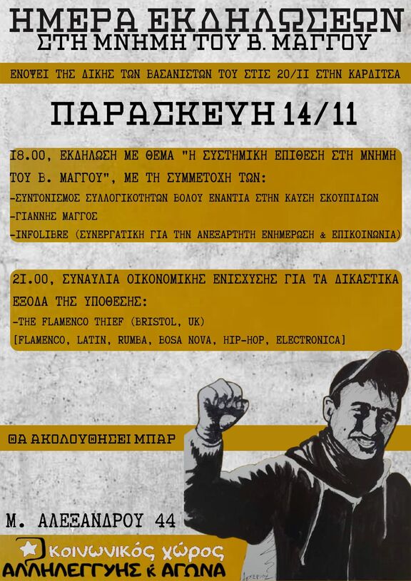18.00, ΕΚΔΗΛΩΣΗ ΜΕ ΘΕΜΑ «Η ΣΥΣΤΗΜΙΚΗ ΕΠΙΘΕΣΗ ΣΤΗ ΜΝΗΜΗ ΤΟΥ Β. ΜΑΓΓΟΥ», ΜΕ ΤΗ ΣΥΜΜΕΤΟΧΗ ΤΩΝ: