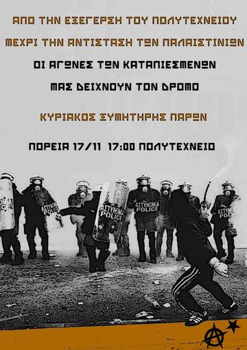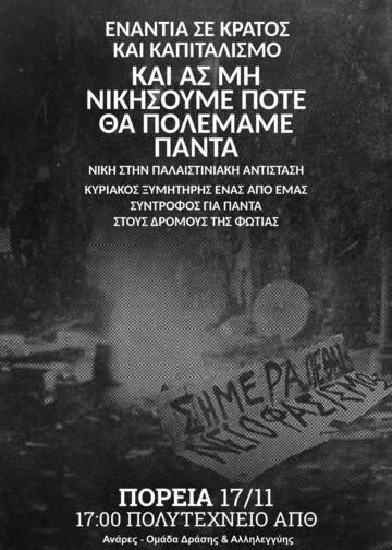 17/11 Στηρίζουμε τα καλέσματα για την αντικρατική αντικαπιταλιστική πορεία 17.00 | Πολυτεχνείο