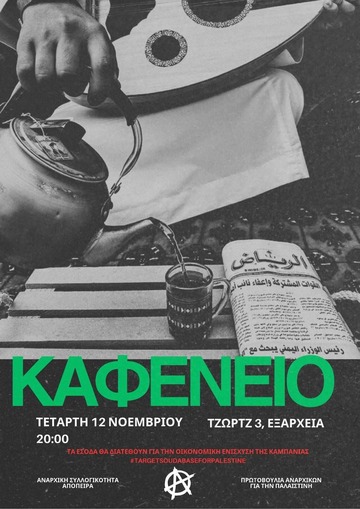 Τα έσοδα του καφενείου θα διατεθούν για την οικονομική ενίσχυση της καμπάνιας #targetsoudabaseforpalestine