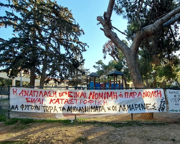 - Ακόμα κι αν στη συγκεκριμένη φάση δεν προχωρήσουν στην κοπή δέντρων, πρόκειται για ένα διάτρητο νομιμότητας έργο ανάπλασης που συνεχίζεται χωρίς την ύπαρξη μιας σειράς απαιτούμενων αδειών. Σημειώνουμε την ύπαρξη πολύ επικίνδυνων για την υγεία μας υλικών μέσα στο εργοτάξιο (π.χ. ελενίτ) για το οποίο απαιτείται ειδικός και ασφαλής τρόπος απομάκρυνσης.