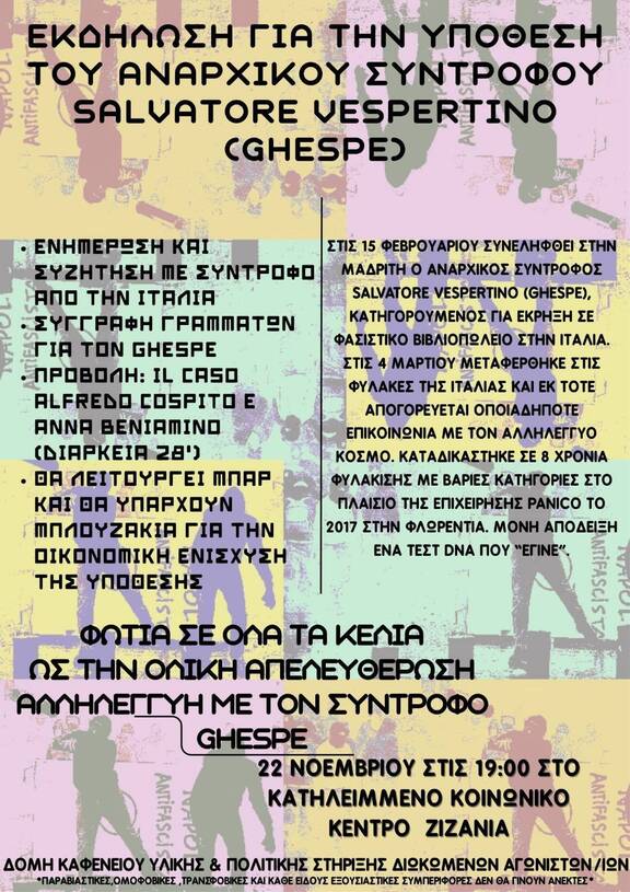 Εκδήλωση αλληλεγγύης στον αναρχικό αιχμάλωτο Salvatore Vespertino (Ghespe)