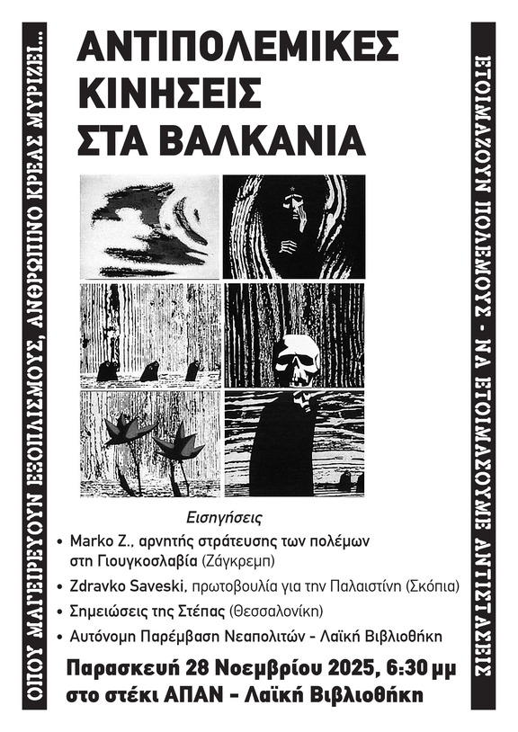 ΕΚΔΗΛΩΣΗ - ΣΥΖΗΤΗΣΗ: Αντιπολεμικές Κινήσεις στα Βαλκάνια
