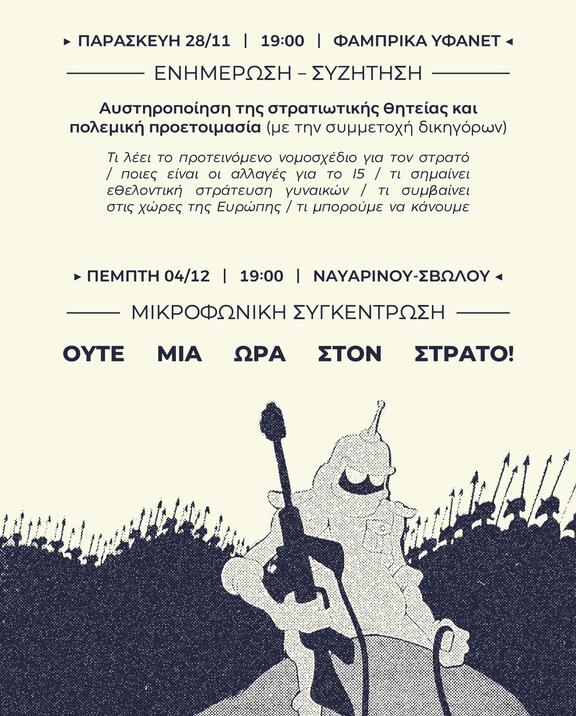 ανοιχτή συνέλευση ενάντια στην αυστηροποίηση της στρατιωτικής θητείας και την πολεμική προετοιμασία