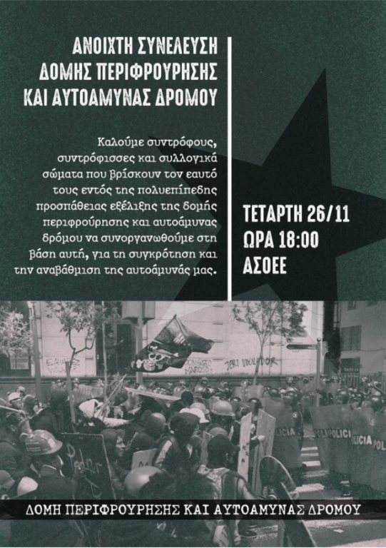 Κάλεσμα σε Ανοιχτή Συνέλευση της Δομής Περιφρούρησης και Αυτοάμυνας Δρόμου