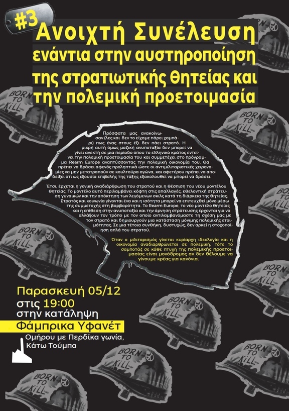 #3 Ανοιχτή Συνέλευση ενάντια στην αυστηροποίηση της στρατιωτικής θητείας και την πολεμική προετοιμασία