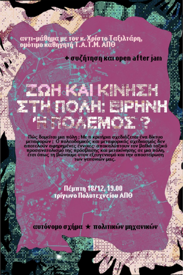 [Αντι-μάθημα] Ζωή και κίνηση στη πόλη: Ειρήνη ή πόλεμος; + συζήτηση και after jam
