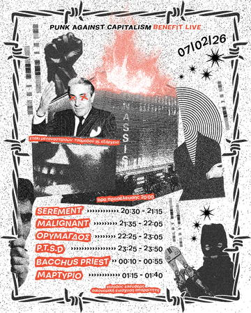 Στο χώρο του live θα διατίθεται merch και πολιτικό υλικό του Punk Against Capitalism.