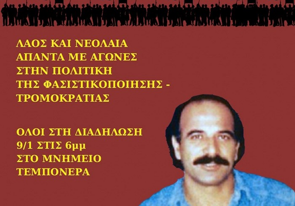 Συγκέντρωση μνήμης και αγώνα στο σημείο της δολοφονίας του αγωνιστή καθηγητή Νίκου Τεμπονέρα|Παρασκευή 9/1,18:00
