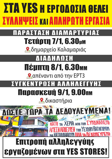Στα YES!STORES η εργοδοσία θέλει ΣΥΛΛΗΨΕΙΣ και ΑΠΛΗΡΩΤΗ ΕΡΓΑΣΊΑ!