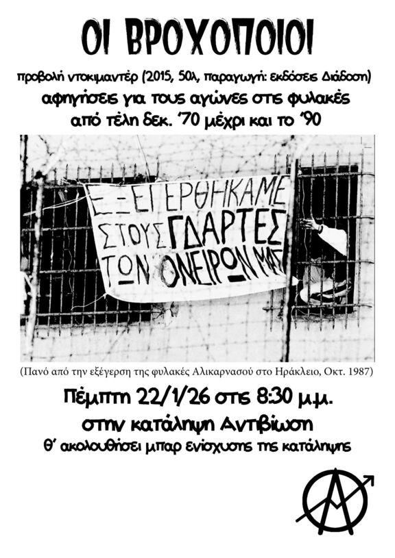 Πέμπτη 22/1 στις 8:30 μ.μ. στην κατάληψη Αντιβίωση
