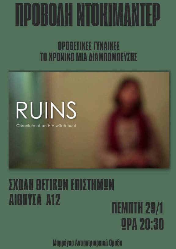 Προβολή ντοκιμαντέρ: Ερείπια (Οροθετικές γυναίκες/Το χρονικό μιας διαπόμπευσης)