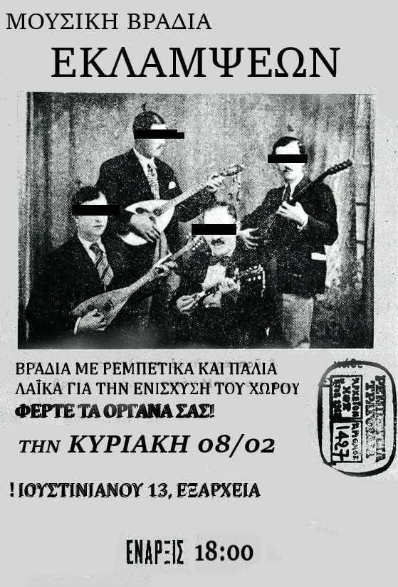 Μουσική βραδιά με ρακόμελα και οινόμελα αυτήν την Κυριακή στις 18:00 για την οικονομική ενίσχυση του χώρου!