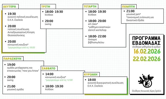 Εβδομαδιαίο πρόγραμμα Ελεύθερου Κοινωνικού Χώρου Σχολείο