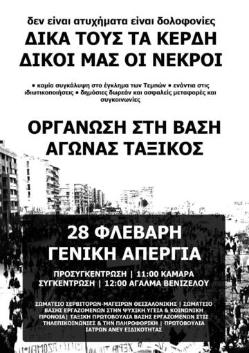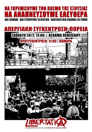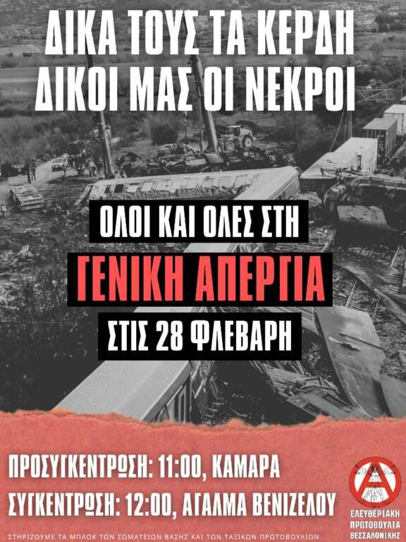ΟΛΟΙ/ΕΣ ΣΤΗΝ ΑΠΕΡΓΙΑΚΗ ΠΟΡΕΙΑ ΓΙΑ ΤΟ ΚΡΑΤΙΚΟ ΚΑΠΙΤΑΛΙΣΤΙΚΟ ΕΓΚΛΗΜΑ ΤΩΝ ΤΕΜΠΩΝ - ΣΑΒΒΑΤΟ 28/2 12:00 ΣΤΟ ΑΓΑΛΜΑ ΒΕΝΙΖΕΛΟΥ