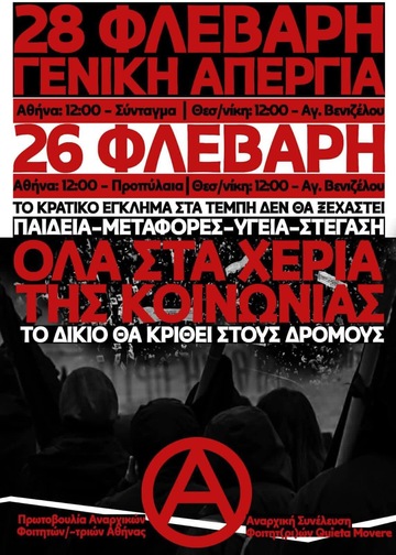 Τρία χρόνια μετά το κρατικό-καπιταλιστικό έγκλημα στα Τέμπη, όλοι οι λόγοι που μας έβγαλαν από την πρώτη στιγμή στους δρόμους παραμένουν ακόμα σε ισχύ: πολιτικά πρόσωπα δεν διώκονται, ο σιδηρόδρομος βρίσκεται ακόμα στην ίδια κατάσταση που οδήγησε στο έγκλημα της 28ης Φλεβάρη του 2023, ενώ σε όλο αυτό που διάστημα που μεσολάβησε μέχρι σήμερα η επίθεση Κράτους και Κεφαλαίου σε όλα τα κοινωνικά αγαθά (παιδεία, υγεία, στέγαση, μεταφορές) συνεχίζεται με αμείωτους ρυθμούς, κινούμενη στην ίδια κατεύθυνση, η οποία μπορεί να συνεχίσει να γεννάει μονάχα νέα εγκλήματα. Γιατί η ίδια επίθεση που αποσκοπεί στον έλεγχο και τη μεσολάβηση του Κράτους πάνω στα δημόσια αγαθά και τις κοινωνικές σχέσεις από τη μία, και στην κερδοφόρο εκμετάλλευση τους από το Κεφάλαιο από την άλλη, γεννιέται μέσα από την αθεράπευτα αντικοινωνική φύση του κρατικού-καπιταλιστικού συστήματος που ως μηχανισμός επιβίωσης και επιβολής σαν προτεραιότητα δεν μπορεί να έχει την κάλυψη των κοινωνικών αναγκών, αλλά την επιβίωση της παρασιτικής σχέσης των πολιτικών και οικονομικών ελίτ εις βάρος μας. Το ιστορικό βάθος του συγκεκριμένου εγκλήματος, από την μη ολοκλήρωση της σύμβασης 717 σε διάστημα εικοσαετίας με την εναλλαγή μιας σειράς κυβερνήσεων στην εξουσία, μέχρι το ξεπούλημα της ΤΡΑΙΝΟΣΕ σε Ιταλούς επενδυτές, επί της σοσιαλδημοκρατικής διακυβέρνησης ΣΥΡΙΖΑ, οι οποίοι επανέφεραν τρένα που είχαν αποσυρθεί για να τα λειτουργήσουν σε έναν εν γνώσει τους μη λειτουργικό σιδηρόδρομο, αποδεικνύει με τον πιο τραγικό τρόπο την πραγματικότητα αυτή.