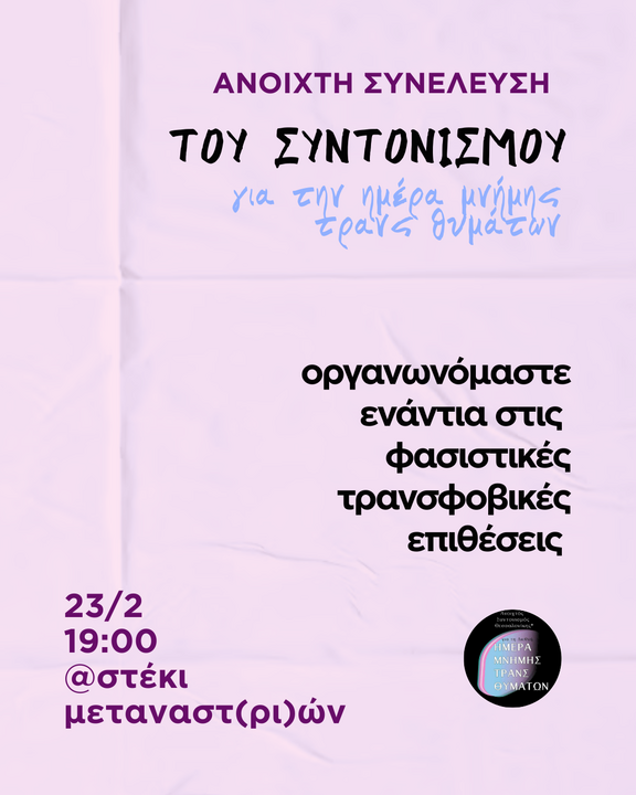 για τη Διεθνή Ημέρα Μνήμης Τρανς Θυμάτων