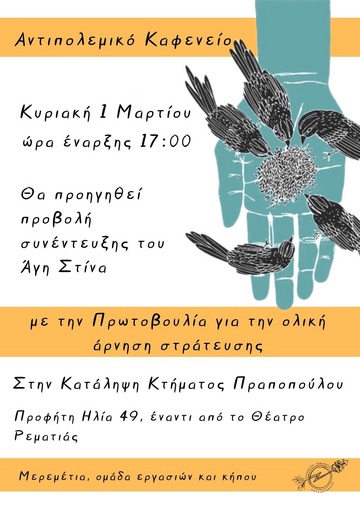 Αντιπολεμικό καφενείο Μερεμετιών με την Πρωτοβουλία για την ολική άρνηση στράτευσης