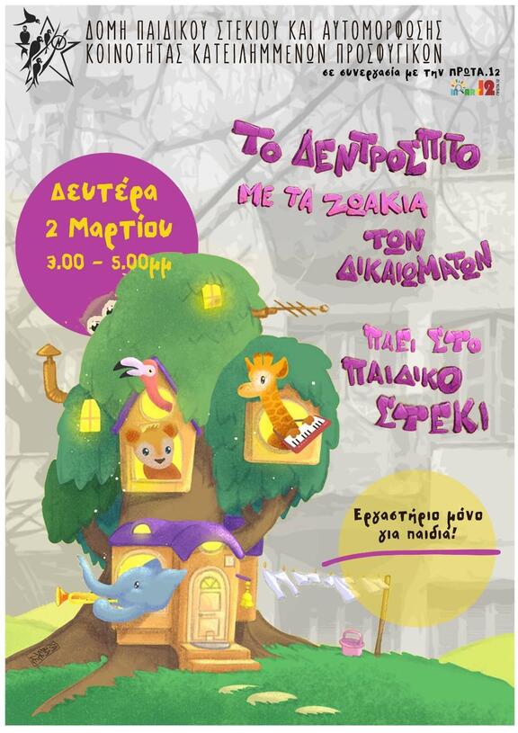 [2/3 | 15:00] Το Δεντρόσπιτο με τα Ζωάκια των Δικαιωμάτων έρχεται στα Προσφυγικά!