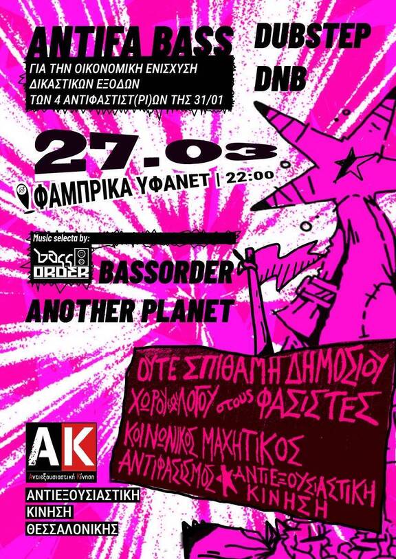 Dubstep/DnB πάρτυ για τα δικαστικά έξοδα των 4 Αντιφασιστ(ρι)ών της 31/01/26