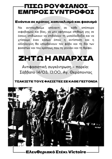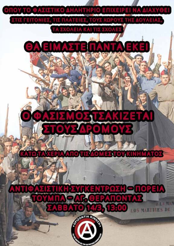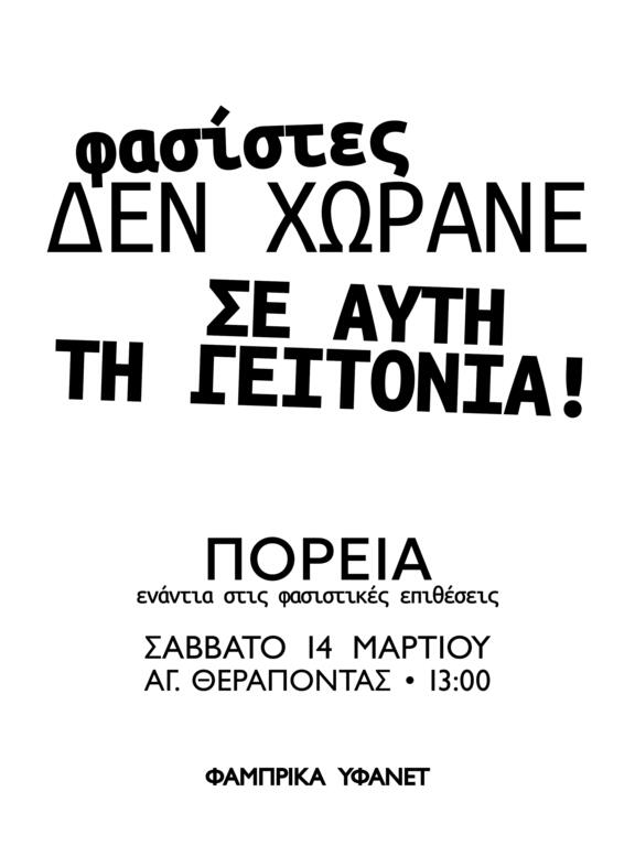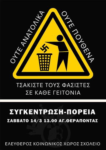 Στηρίζουμε την Αντιφασιστική Συγκέντρωση - Πορεία, Σάββατο 14/3 13:00 Άγιος Θεράποντας, Τούμπα