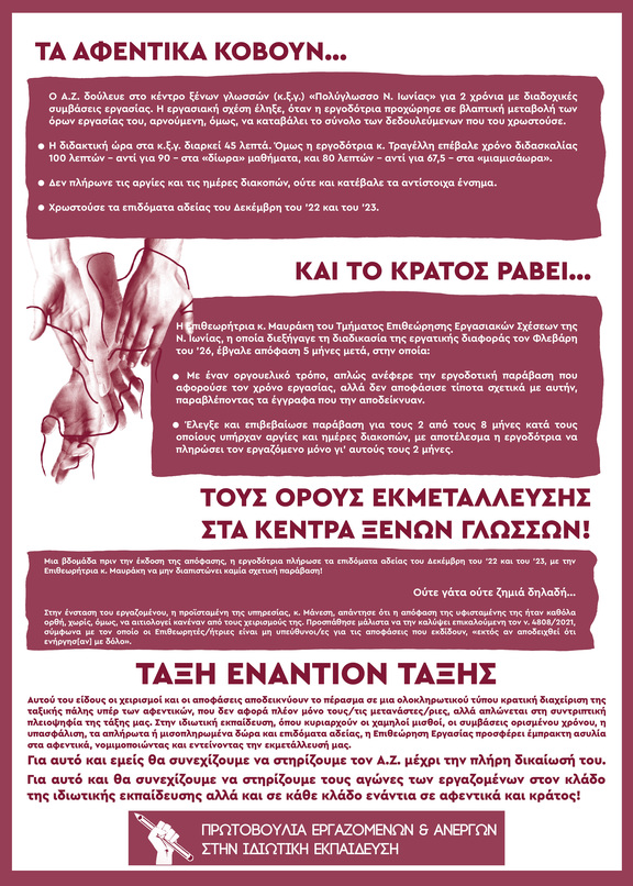 Ο αγώνας ενάντια στο «Πολύγλωσσο Νέας Ιωνίας» συνεχίζεται και περνάει μέσα από την εναντίωση στους χειρισμούς της Επιθεώρησης Εργασίας Ν. Ιωνίας