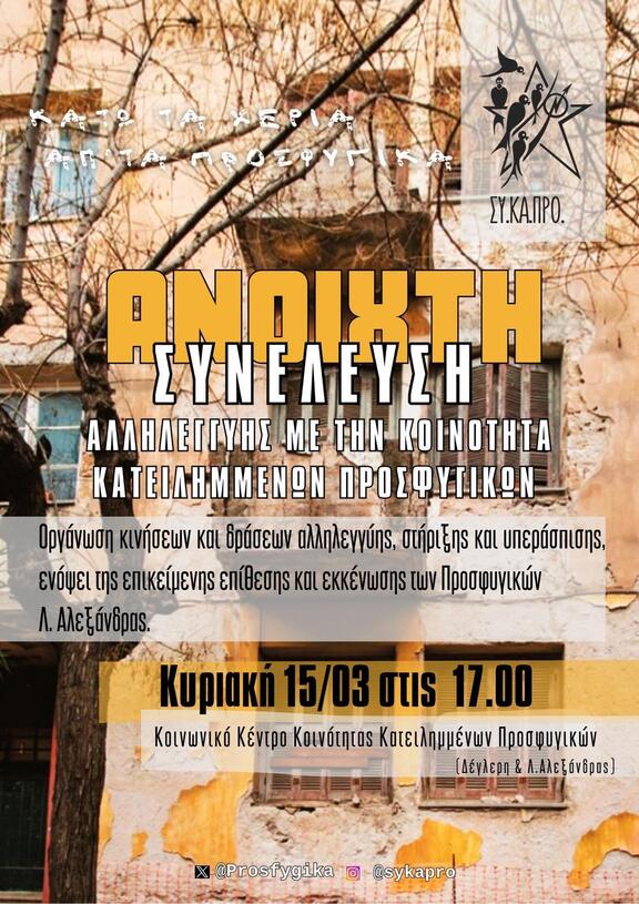 This will be the first assembly after the first solidarity march with the Community of Squatted Prosfygika.