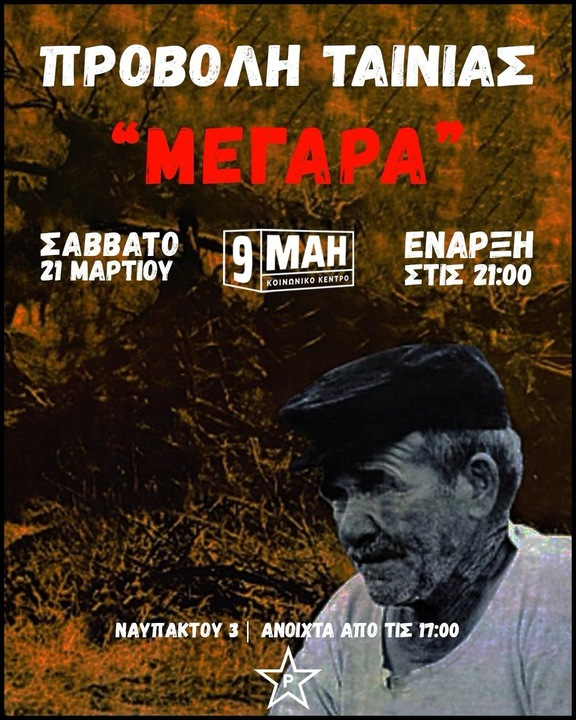 Προβολή ταινίας «Μέγαρα» του Γιώργου Τσεμπερόπουλου στο Κοινωνικό Κέντρο «9 Μάη»
