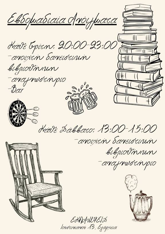 Δανειστική βιβλιοθήκη-Αναγνωστήριο-Μπαρ