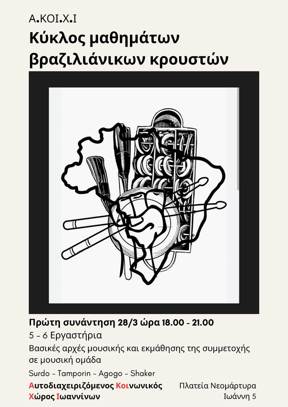 * Γνωριμία με τα όργανα Surdo, Tamporim, Agogo, Shaker.