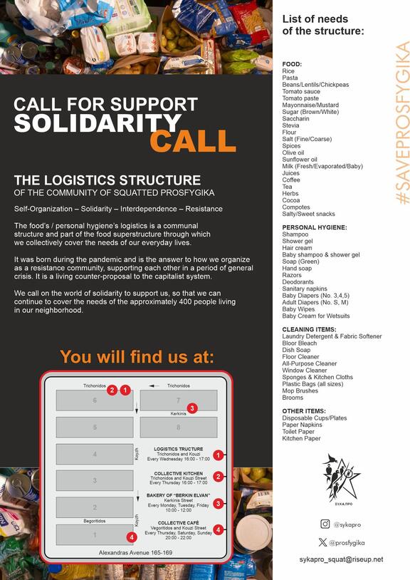 Solidarity call of the Logistics Structure of the Community of Squatted Prosfygika