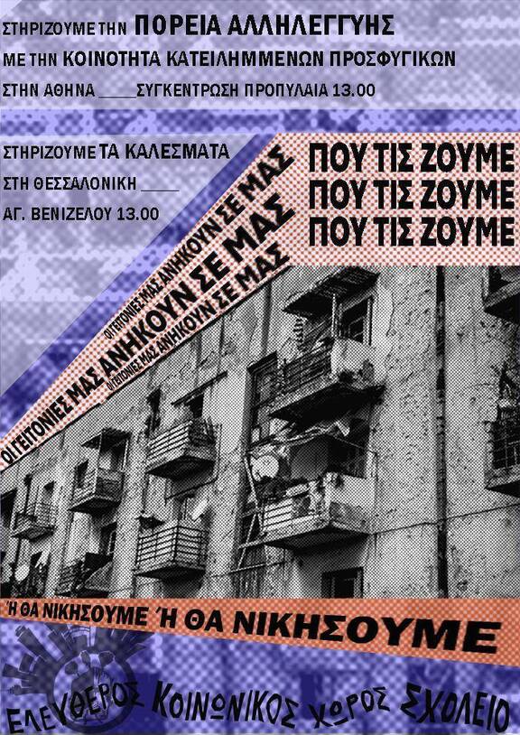 Πανελλαδική και Διεθνή ημέρα ημέρα δράσεων αλληλεγγύης της Κοινότητας των Κατειλημμένων Προσφυγικών