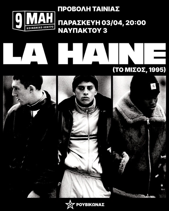 📍Παρασκευή 03/04 στις 20:00: Προβολή ταινίας "La Haine" (Το Μίσος, 1995)