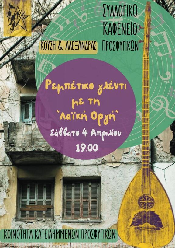 Το Σάββατο 4/4 από τις 19:00 σας περιμένουμε όλους και όλες στο ρεμπέτικο γλέντι με τη "Λαϊκή Οργή" για την οικονομική ενίσχυση της Κοινότητας Κατειλημμένων Προσφυγικών και του αγώνα της ενάντια στα πλάνα εκκένωσης και καταστολής.