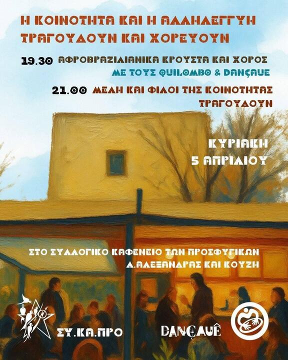 - 19:30: Live στο Συλλογικό Καφενείο: "Η Κοινότητα και η αλληλεγγύη τραγουδούν και χορεύουν!"