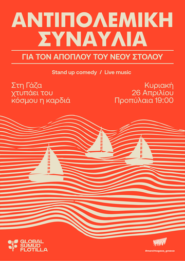 Η συναυλία εντάσσεται στο διεθνές κάλεσμα στήριξης του στόλου μας ,Global Sumud Flotilla.Πάνω από 80 σκάφη από 100 χώρες ετοιμάζονται να συναντηθούν στη Μεσόγειο για να σπάσουν τον παράνομο αποκλεισμό της Γάζας και να ανοίξουν έναν ανθρωπιστικό διάδρομο ζωής. Σε αυτή τη συγκυρία, κάθε δράση ορατότητας και στήριξης είναι κρίσιμη.